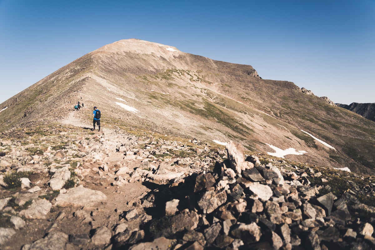 Quandary Peak, located about 85 miles from Denver, is one of Colorado’s most popular and accessible 14ers. The well-defined, easy-to-follow trail winds through big alpine views with a steady pitch, and gains roughly 3,450 feet of elevation over the 6.75-mile round-trip trek. Despite Quandary Peak’s reputation as a more approachable 14er, this is still a challenging route. Anyone who hikes it should be able to complete longer hikes on sustained pitches and at higher elevations. Depending on ability levels, hiking Quandary Peak typically takes between five to seven hours to complete. Like most 14ers in Colorado, it’s recommended to start hiking Quandary Peak as early as possible to beat the crowds and heat, and to finish before afternoon thunderstorms roll in.