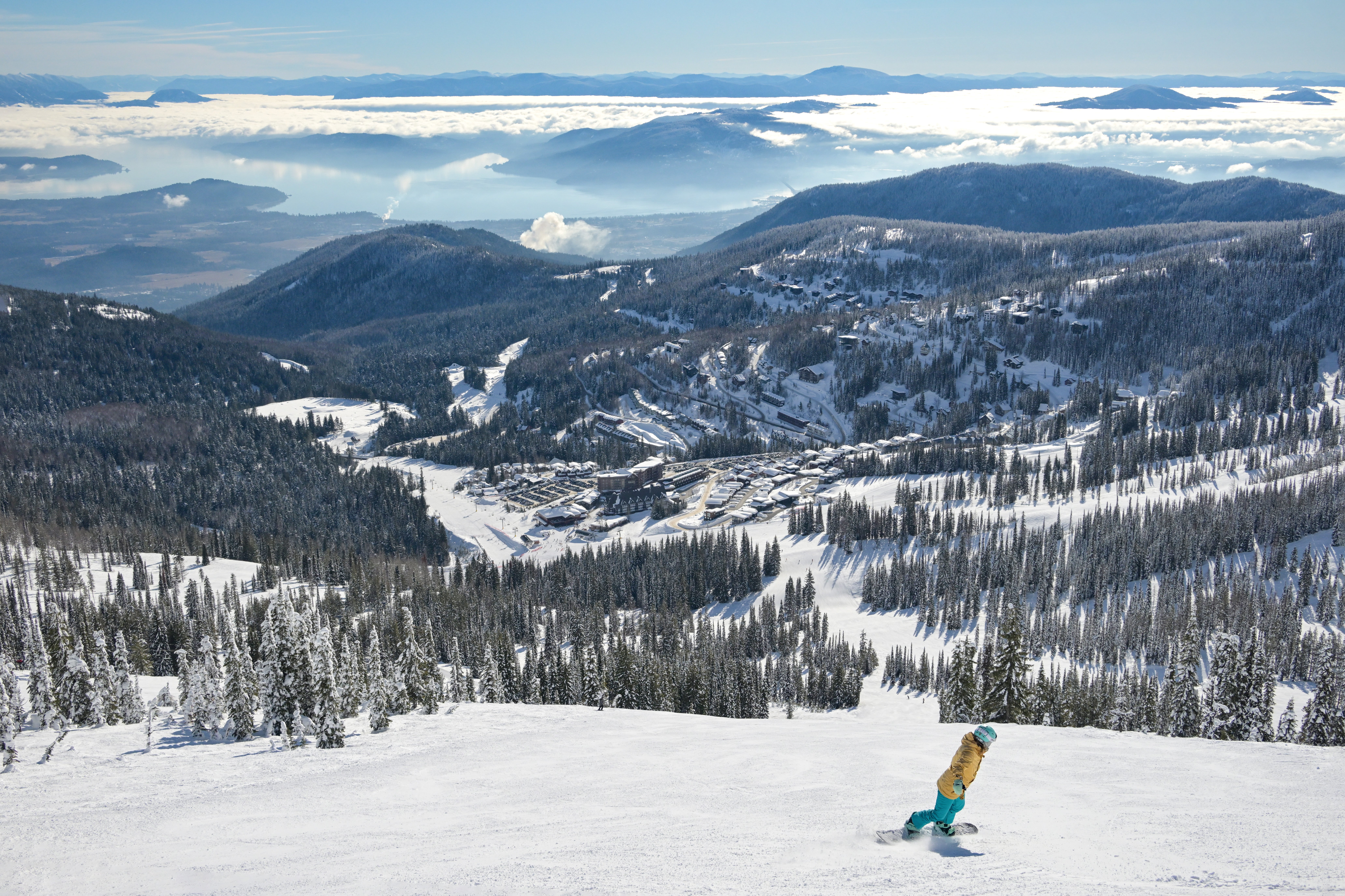 While Schweitzer doesn’t have the name recognition of some of the other ski resorts on this list, it boasts some of the most underrated groomers in the Pacific Northwest. Beginners can find their groove on gentle greens off the Musical Chairs and Basin Express lifts—runs like Midway and Happy Trails offer wide pitches perfect for early‑stage progression or warm-up laps. On the front side, blue cruisers such as Ridge Run and Sundance deliver long, flowing descents with big‑mountain views of nearby Lake Pend Oreille. For those craving a bit more speed and pitch, the rolling slopes off the Stella chairlift often get the corduroy treatment, offering advanced skiers a chance to carve clean, fast arcs.