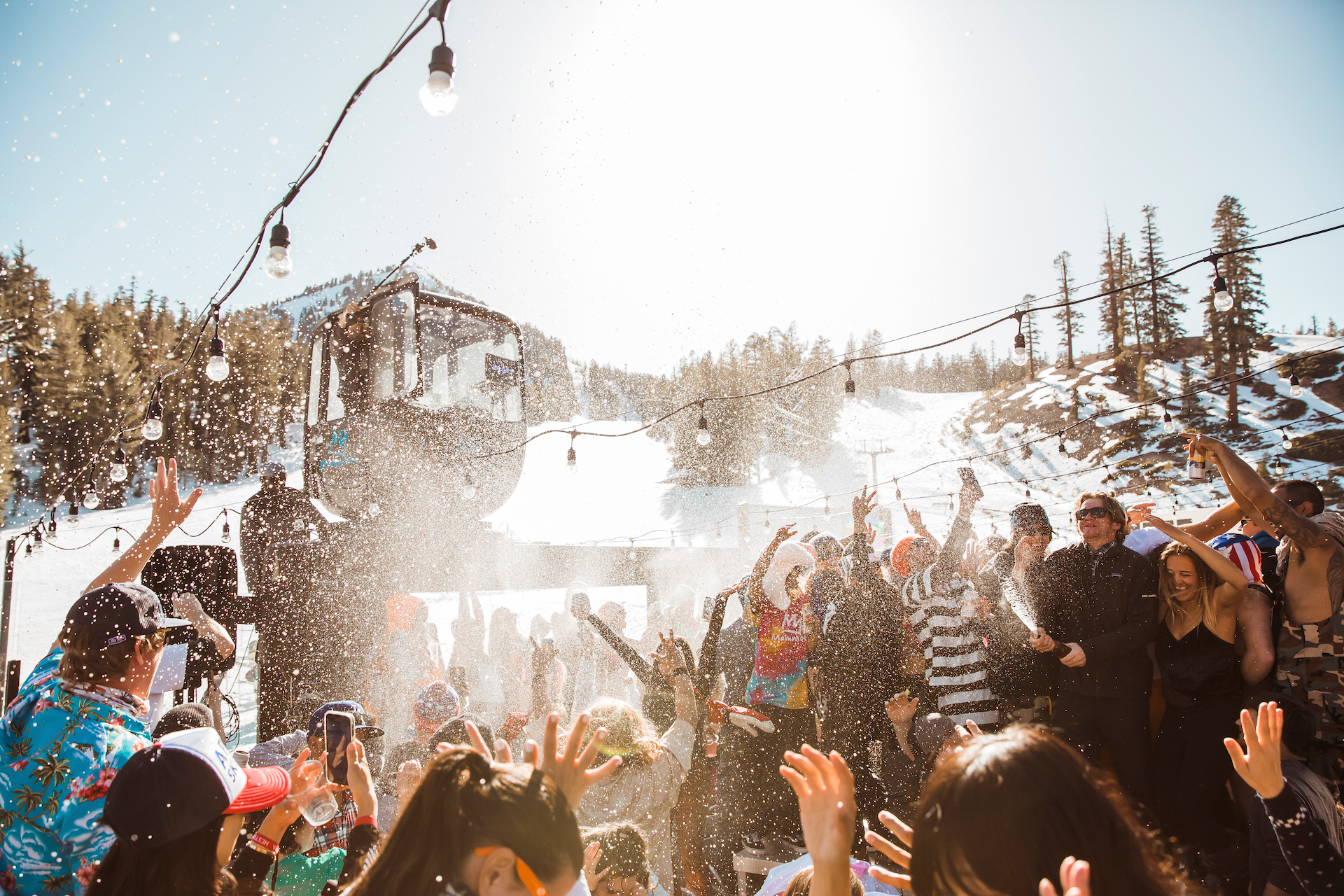 Mammoth Mountain nails the après trifecta: live music, bluebird skies, and killer views. Mammoth’s legendary patio parties turn Canyon Lodge into an après scene, complete with a live DJ and a crowd that’s always ready to throw down. Past weekends have featured big-name talent like LP Giobbi and NEIL FRANCES, drink specials, and pop-up activations from partners including Red Bull, Athletic Brewing, Sun Bum, and more. If your perfect run ends with a cold drink, loud beats, and sunshine, Mammoth’s where you’ll want to drop in.